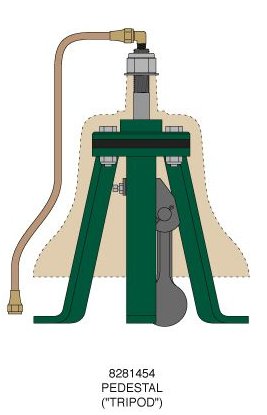 (EMD #8057928 STAND .. Bell and #8057929 YOKE .. Bell). This cast iron assembly looks and swings like a steam-era bell, but is configured for pneumatic ringer operation. The asymmetrical look of the stand results from being designed to accommodate an air line emerging from the left