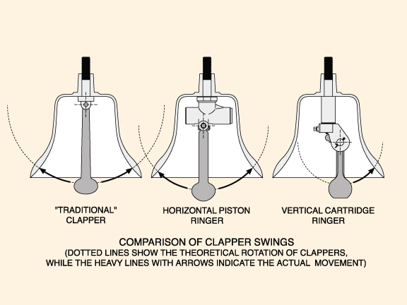 The wonderful "clang... clang... clang..." cadence we love to hear is a combination of bell construction characteristics and operator skill. Even at their best, pneumatic ringers are to bells what solenoid valves are to horns/whistles.
